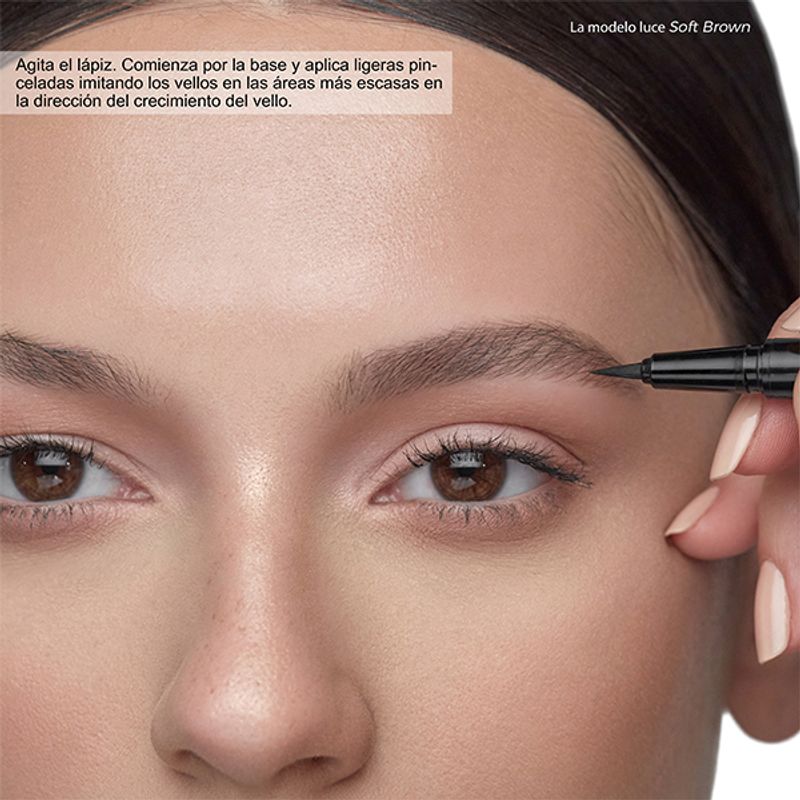 Un lápiz líquido para cejas de punta superfina y firme, ideal para crear trazos precisos que asemejan los pelos reales y lograr un acabado natural. Esté lápiz permite rellenar áreas específicas de forma detallada, dando a las cejas una apariencia más tupida. Su fórmula se desliza fácilmente sobre la piel, creando detalles con precisión e imitando la apariencia de pelo natural para un acabado perfecto.